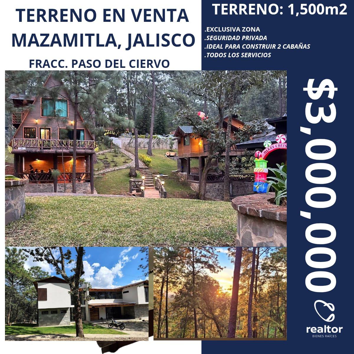 *TERRENO EN VENTA EN FRACCIONAMIENTO PASO DEL CIERVO, MAZAMITLA, JALISCO.